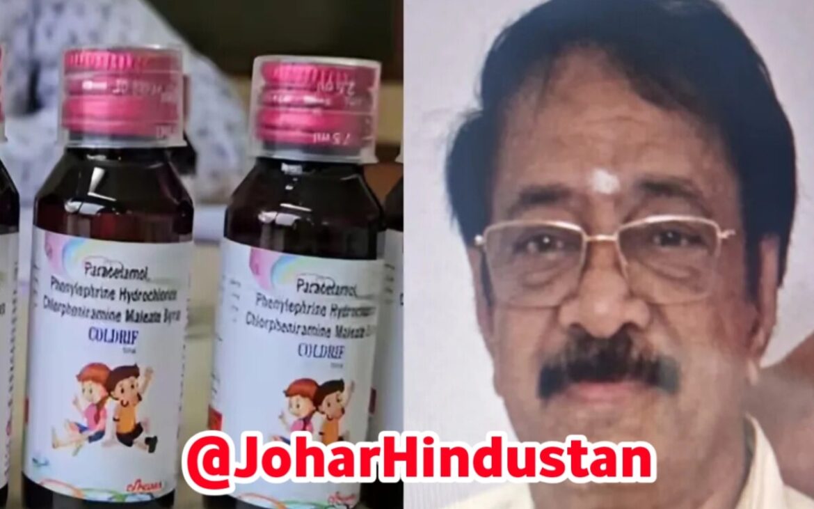 जोहार हिंदुस्तान | नई दिल्ली: चेन्नई स्थित Sresan Pharmaceuticals कंपनी के मालिक जी. रंगनाथन को मध्य प्रदेश पुलिस ने गिरफ्तार किया है। यह वही कंपनी है जिसने Coldrif Cough Syrup बनाया था — वही सीरप जिसमें जहरीला रासायनिक तत्व Diethylene Glycol (DEG) मिलने की पुष्टि हुई है।