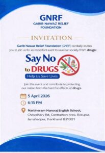 जोहार हिंदुस्तान | जमशेदपुर/झारखंड : दावत-ए-इस्लामी इंडिया, जमशेदपुर की ओर से 5 अप्रैल 2026 को एक भव्य एवं सामाजिक रूप से महत्वपूर्ण कार्यक्रम का आयोजन किया जा रहा है। यह आयोजन समाज में जागरूकता फैलाने, नशामुक्ति का संदेश देने और शिक्षा को बढ़ावा देने के उद्देश्य से किया जा रहा है।