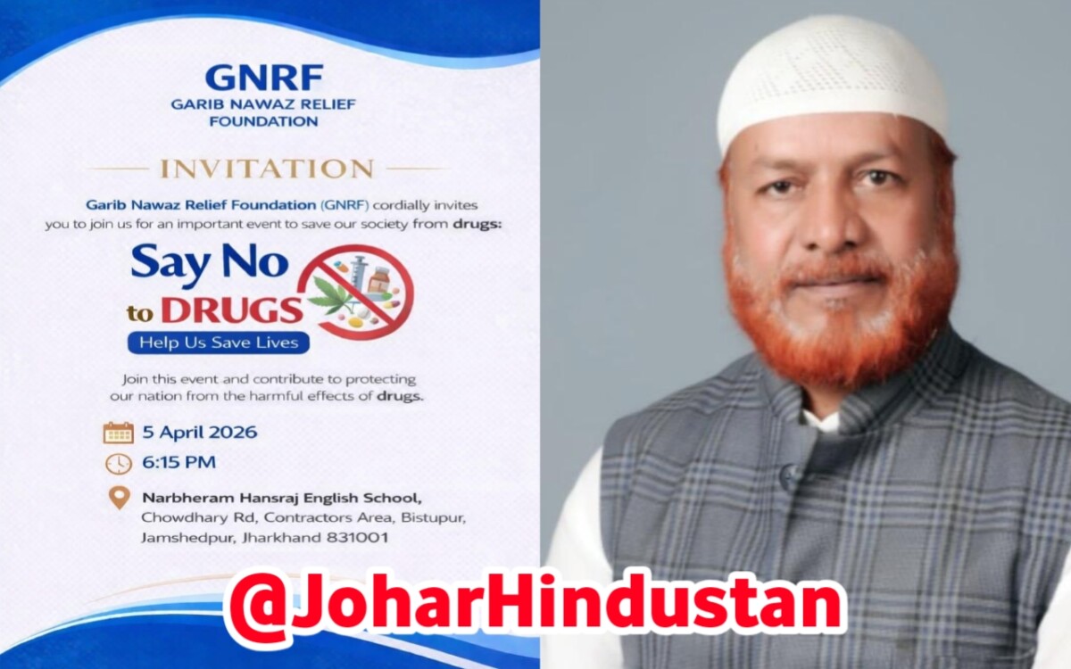 जोहार हिंदुस्तान | जमशेदपुर/झारखंड : दावत-ए-इस्लामी इंडिया, जमशेदपुर की ओर से 5 अप्रैल 2026 को एक भव्य एवं सामाजिक रूप से महत्वपूर्ण कार्यक्रम का आयोजन किया जा रहा है। यह आयोजन समाज में जागरूकता फैलाने, नशामुक्ति का संदेश देने और शिक्षा को बढ़ावा देने के उद्देश्य से किया जा रहा है।