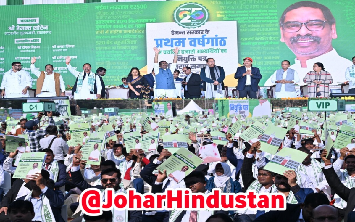 जोहार हिंदुस्तान | रांची/झारखंड: झारखंड सरकार के दूसरे कार्यकाल का पहला साल पूरा होने पर मोरहाबादी मैदान में एक भव्य राज्यस्तरीय समारोह आयोजित किया गया।