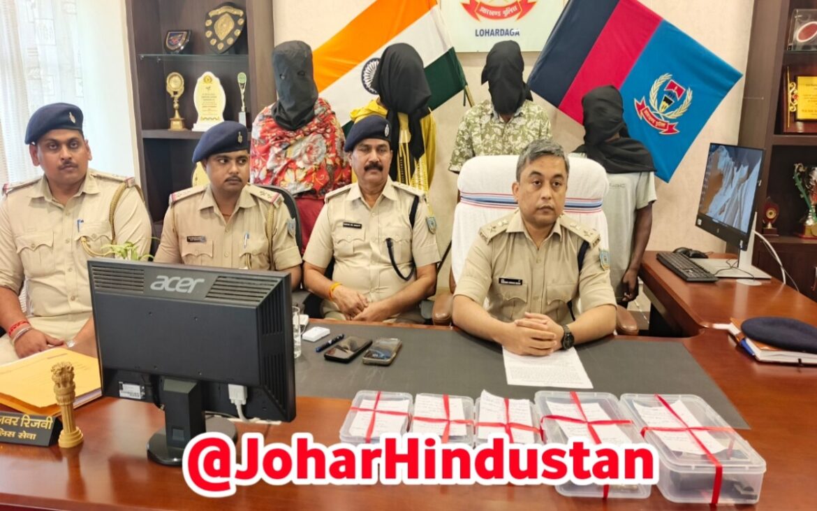 जोहार हिंदुस्तान | लोहरदगा : पुलिस अधीक्षक सादिक अनवर रिजवी के नेतृत्व में लोहरदगा पुलिस ने एक बड़ी सफलता दर्ज की है। पुलिस अधीक्षक को मिली गुप्त सूचना के आधार पर की गई कार्रवाई में भंडरा थाना क्षेत्र में पुलिस ने कुख्यात अपराधियों के गिरोह का भंडाफोड़ करते हुए चार अपराधियों को गिरफ्तार किया है। ये अपराधी भंडरा थाना क्षेत्र में बड़ी आपराधिक वारदात को अंजाम देने की योजना बना रहे थे।