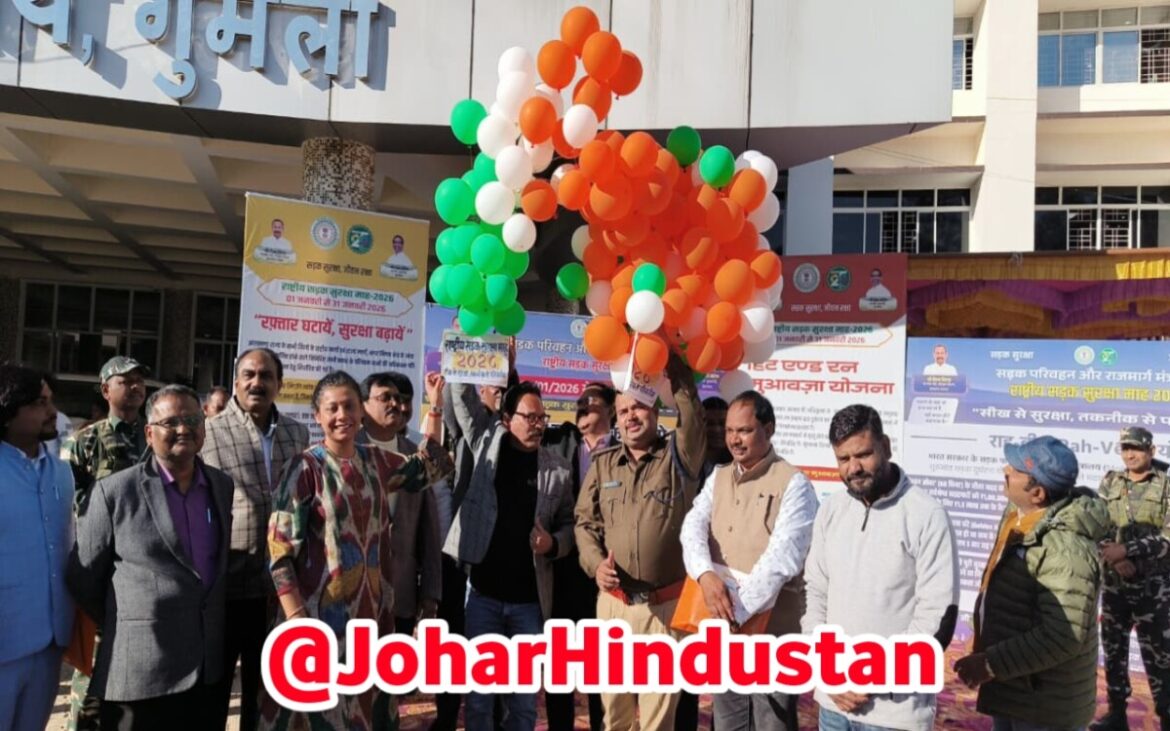 जोहार हिंदुस्तान | गुमला/झारखंड: राष्ट्रीय सड़क सुरक्षा माह 2026 के तहत गुरुवार को गुमला समाहरणालय परिसर में जागरूकता कार्यक्रम का आयोजन किया गया। कार्यक्रम में सांसद सुखदेव भगत, उपायुक्त प्रेरणा दीक्षित और पुलिस अधीक्षक हरीश बिन जमा ने संयुक्त रूप से रंग-बिरंगे गुब्बारे उड़ाकर आम लोगों को सड़क सुरक्षा का संदेश दिया। इस अवसर पर जिलेवासियों से अपील की गई कि वे सड़क पर चलते समय यातायात नियमों का पालन करें और सुरक्षा को अपनी प्राथमिकता बनाएं।