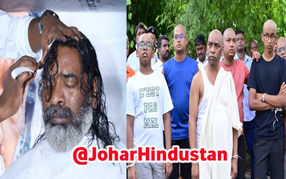 जोहार हिंदुस्तान | रामगढ़ : झारखंड आंदोलन के महानायक और पूर्व मुख्यमंत्री गुरुजी शिबू सोरेन के निधन के बाद, आज उनके पैतृक गांव नेमरा में आदिवासी परंपरा के अनुसार दशकर्म का आयोजन हुआ। इस मौके पर मुख्यमंत्री हेमंत सोरेन ने पारंपरिक रीति-रिवाजों के तहत पहान पुजार की मौजूदगी में मुंडन संस्कार संपन्न कराया। जैसे ही हेमंत सोरेन ने मुंडन करवाया, पूरा माहौल भावुक हो उठा, मौके पर मौजूद ग्रामीण, कार्यकर्ता और परिजन सभी की आंखें नम हो गई।