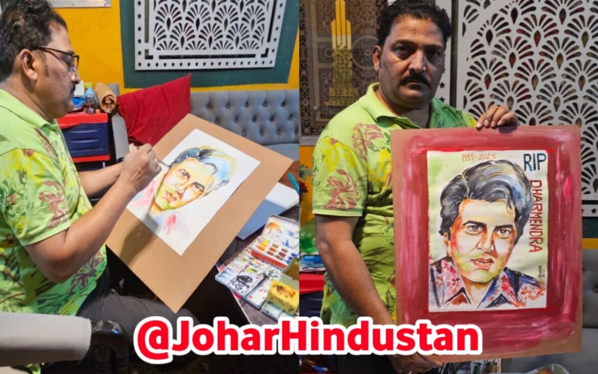 Home जोहार हिंदुस्तान स्पेशलरांची के कलाकार मोहम्मद साबिर हुसैन ने पेंटिंग बनाकर धर्मेंद्र को दी श्रद्धांजलि