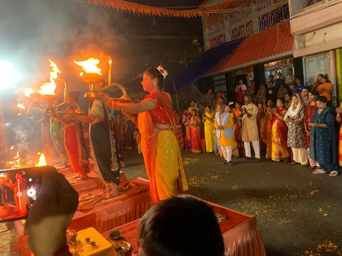 शाम को आचार्य सूर्य नारायण पाठक के वेद मंत्रोच्चार और वैदिक विधि-विधान के अनुसार रुद्राभिषेक किया गया। इसके पश्चात संध्या में कुंवारी कन्याओं द्वारा दीप प्रज्वलन कर दिव्य और भव्य महा आरती संपन्न हुई, जिसने मंदिर परिसर को भक्ति से सराबोर कर दिया।