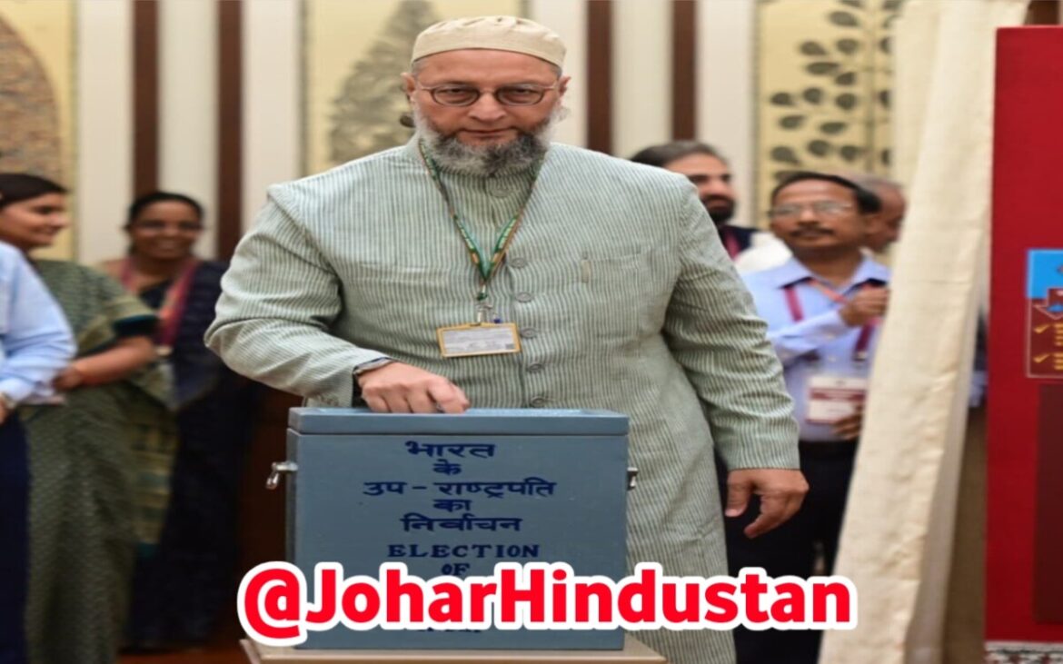 जोहार हिंदुस्तान | नई दिल्ली : देश के 15वें उपराष्ट्रपति के चुनाव को लेकर दिल्ली स्थित संसद भवन में मतदान जारी है। इसी बीच ऑल इंडिया मजलिस-ए-इत्तेहादुल मुस्लिमीन (AIMIM) के राष्ट्रीय अध्यक्ष और हैदराबाद से लोकसभा सांसद बरिस्टर असदुद्दीन ओवैसी ने भी अपना वोट डाला।